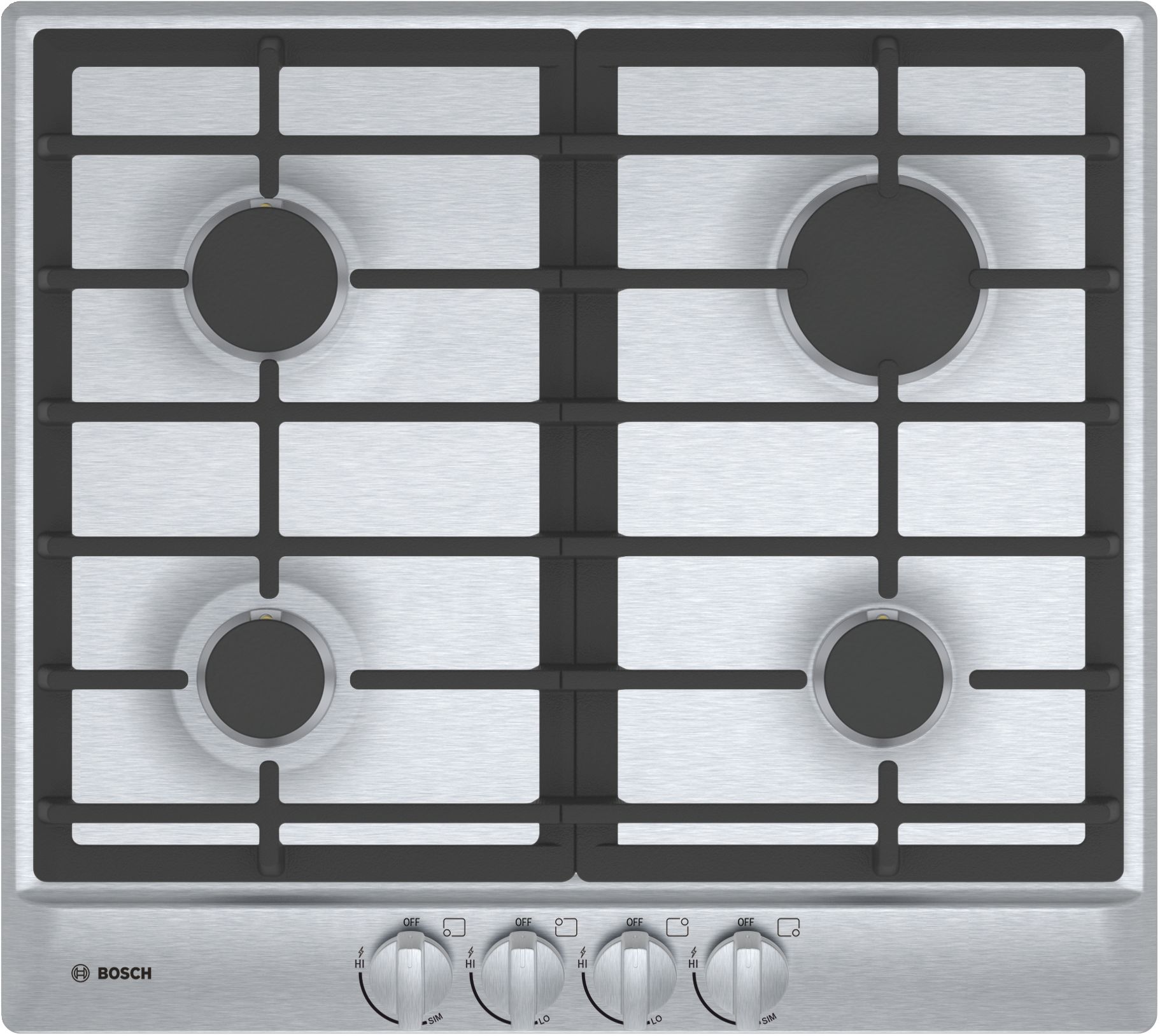 Bosch 500 Series 24" Gas Cooktop- Stainless Steel with 4 burners, heavy duty metal knobs and continuous gratesRead More