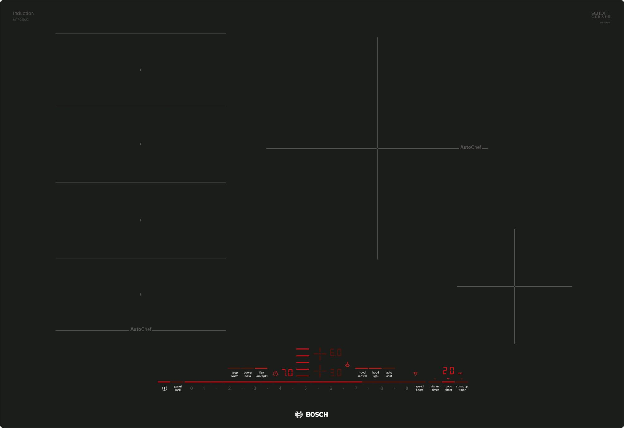 FlexInduction® cooktop allows you to place your cookware wherever you want on the flexible cooking zone. Home Connect™ – the easy way to connect your smart device with your Bosch cooktop.Read More